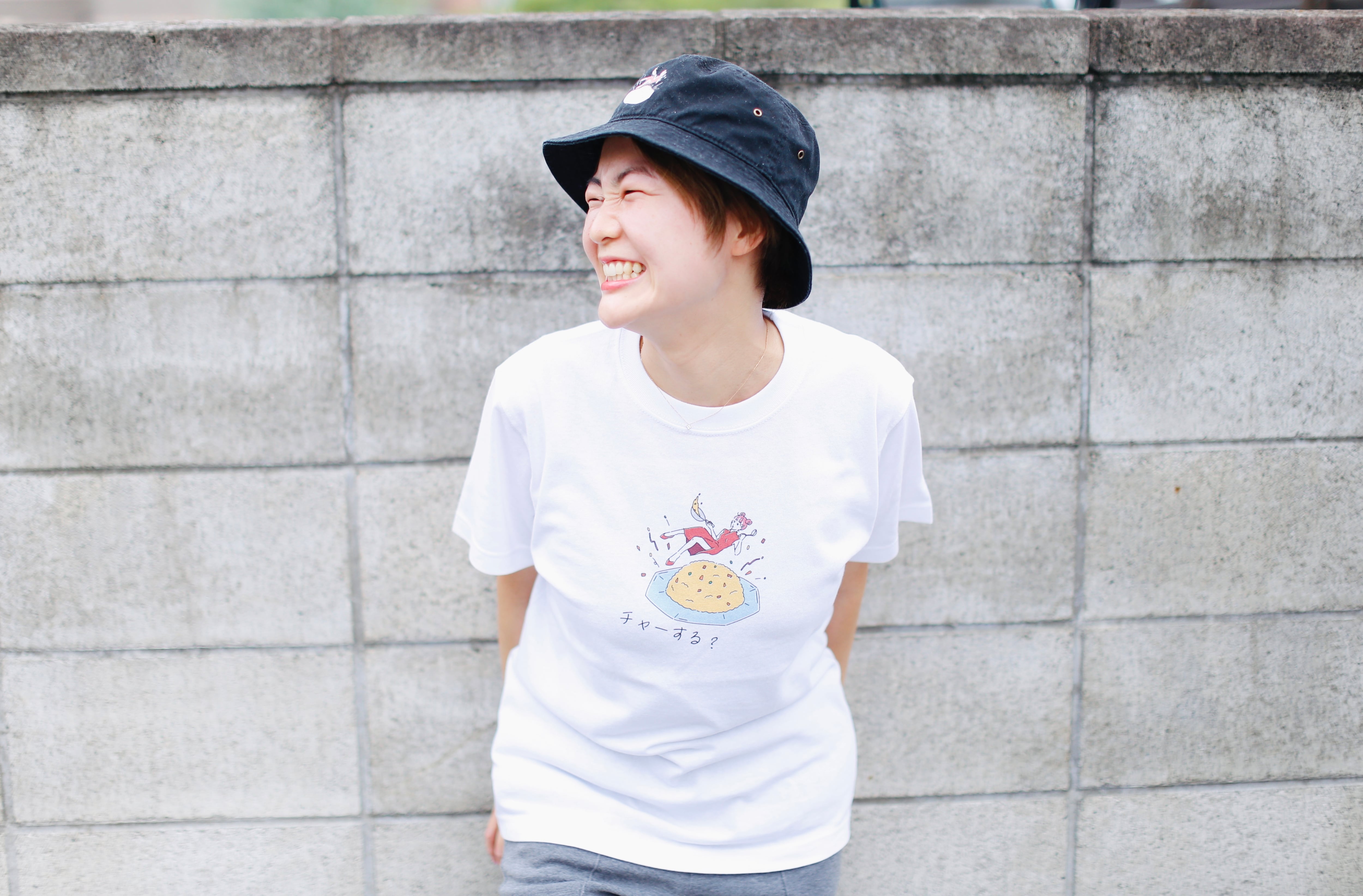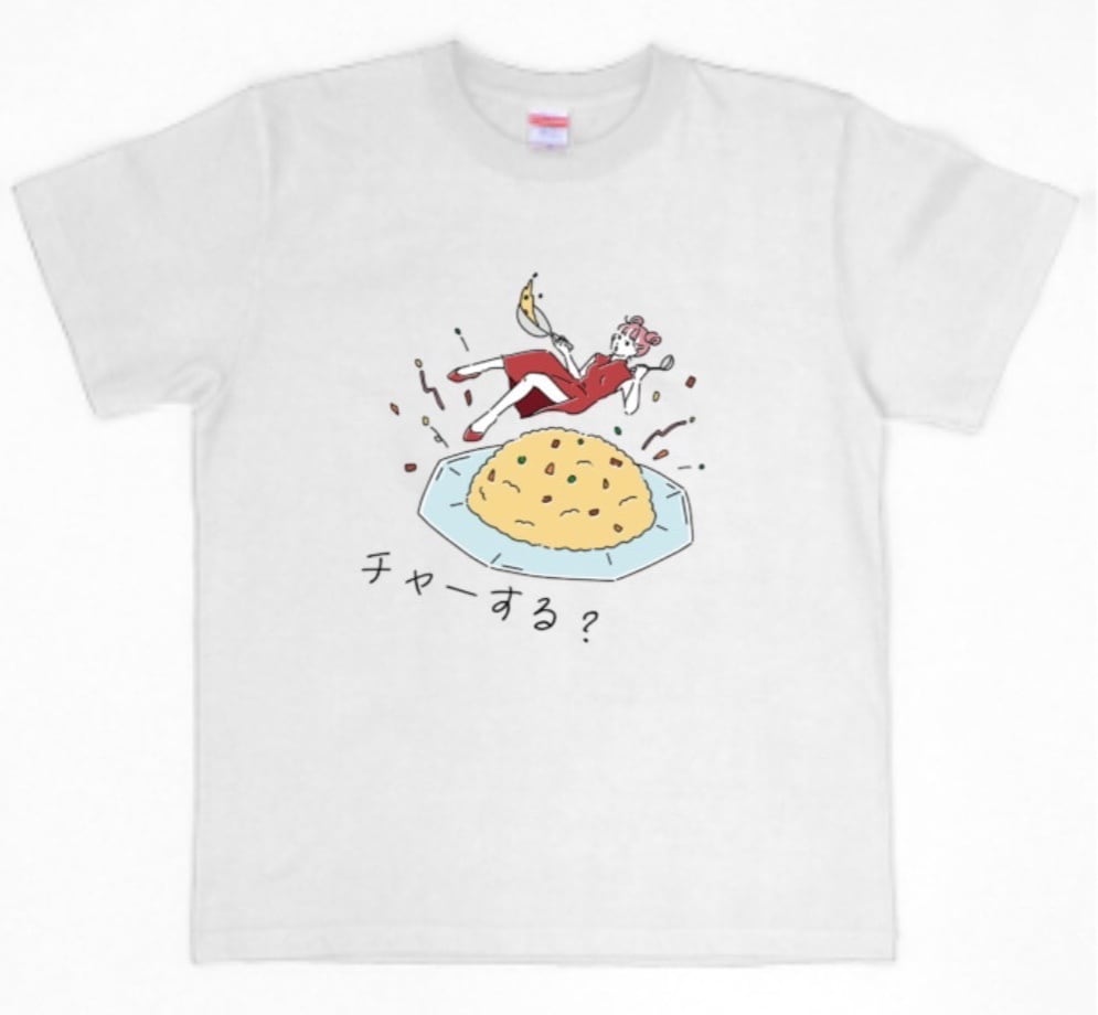チャイナガールが炒飯の上で炒飯を炒めているイラストです。
